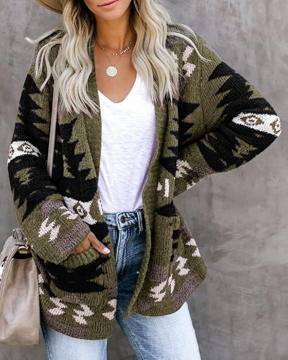 • ❤ Feature: Lightweight aztec style knit sweater, open front long sleeve loose cardigan, chic trendy and stylish knitted coat, with two side pockets. Perfect to wear for spring, late summer or fall.