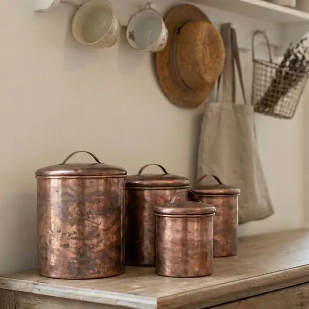 https://mavely.app.link/ODITZmw1E0b THIS IS AN AFFILATE LINK Organize your countertops in farmhouse style with our Lidded Copper Finished Stainless Steel Canisters Set of 4. This stainless-steel canister comes in a set of four graduating sizes, each with an oxidized copper finish and a lid for convenient storage. This canister set is a great farmhouse find!
